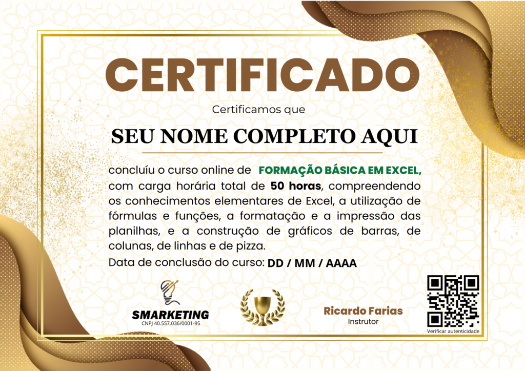 Sim! Ao finalizar o curso, você receberá um Certificado de Conclusão. Isso é ótimo para complementar seu currículo ou comprovar suas habilidades no Excel, especialmente se você estiver buscando novas oportunidades no mercado de trabalho.
